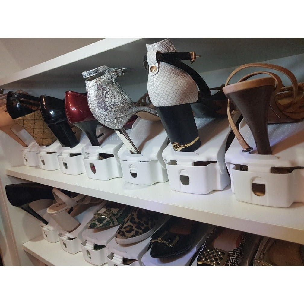 Maximize o espaço de armazenamento dos seus sapatos e diga adeus às quedas com nosso Organizador de Sapatos LDecor. Com um design inovador que acomoda duas pares ao mesmo tempo no mesmo espaço, é a solução perfeita para quartos, prateleiras de sapatos ou armários.