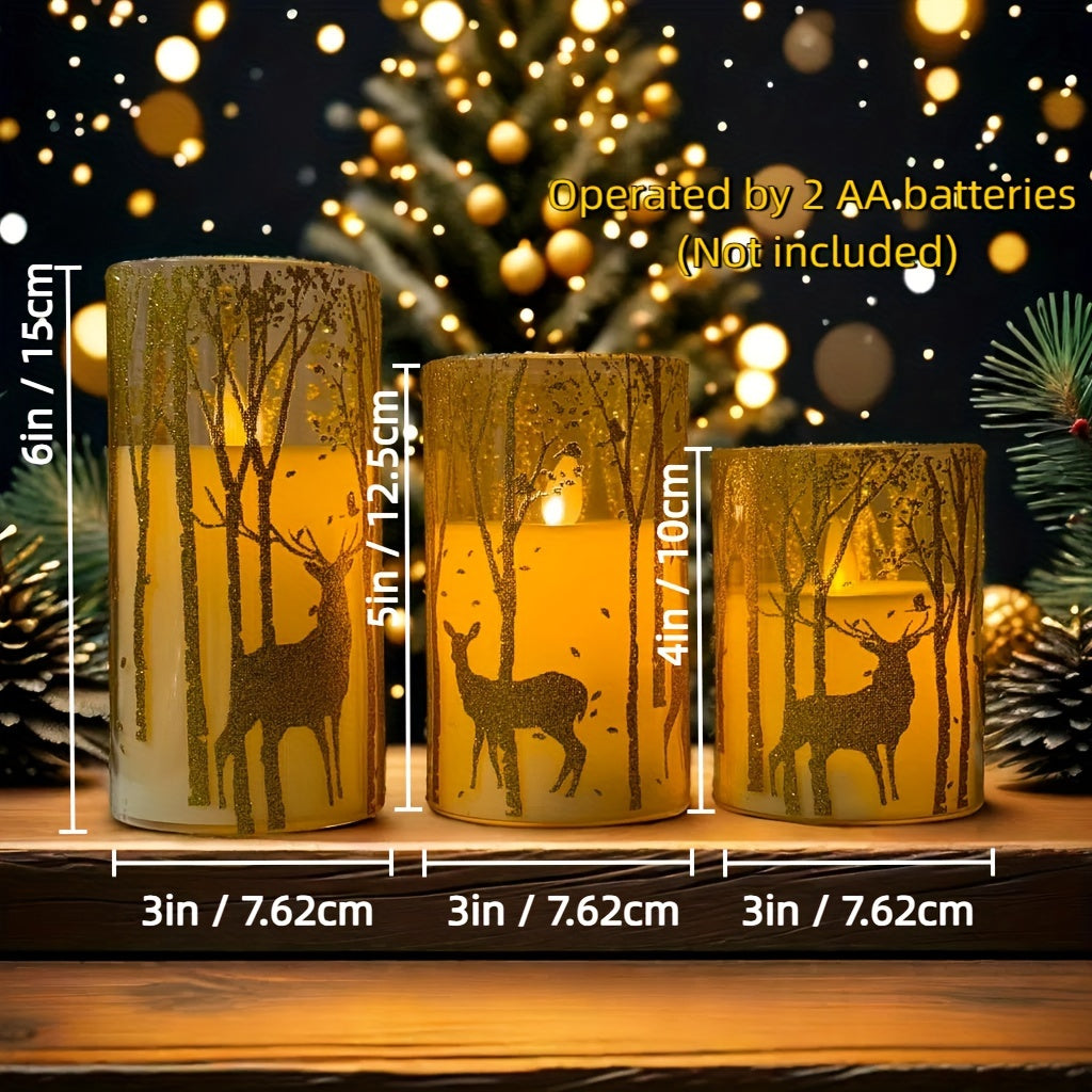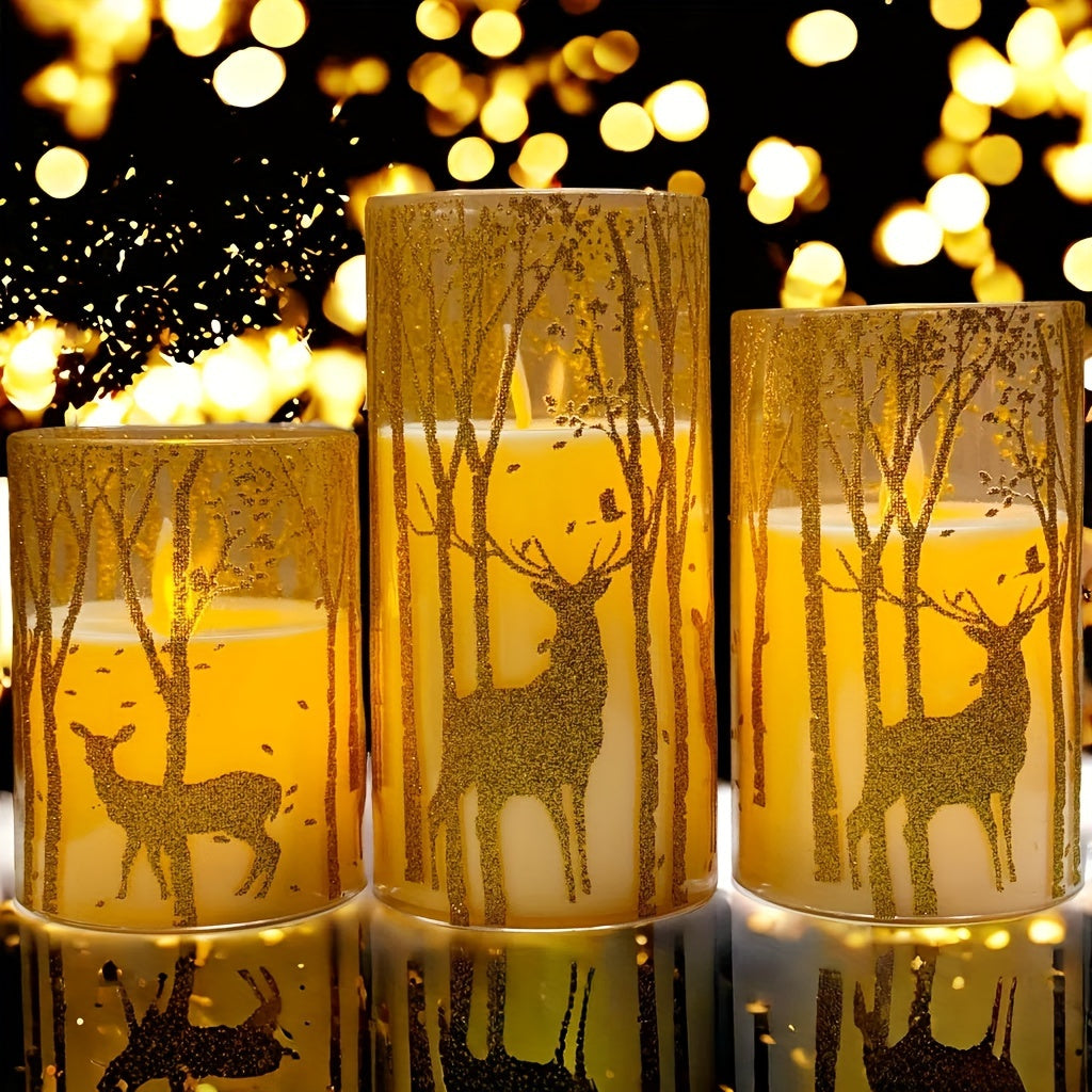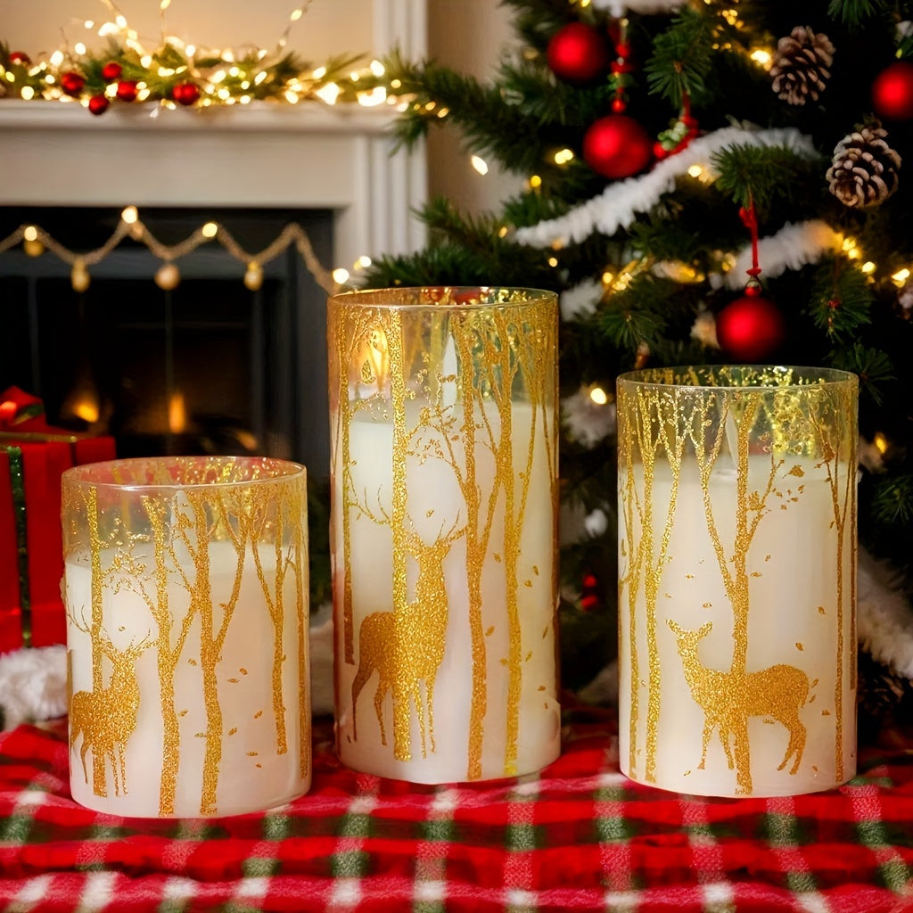 Este elegante conjunto de velas decorativas com temática de floresta e cervos é ideal para trazer um clima acolhedor e sofisticado ao seu ambiente natalino. Com detalhes em dourado e desenhos de cervos em meio a árvores, essas velas proporcionam uma iluminação suave e encantadora, perfeita para salas de estar, mesas de jantar ou ambientes festivos.