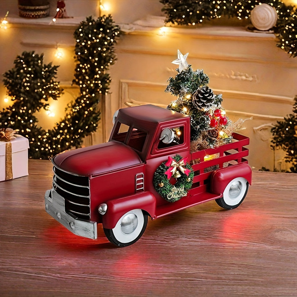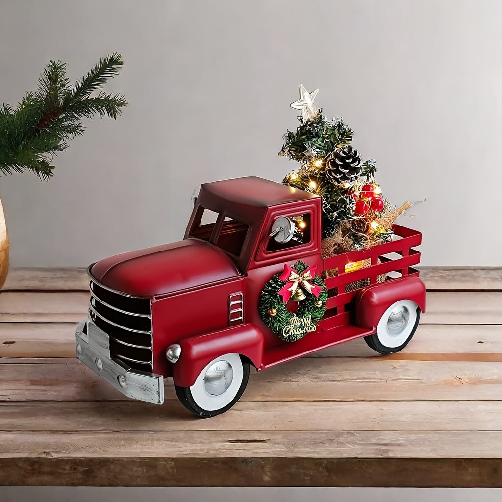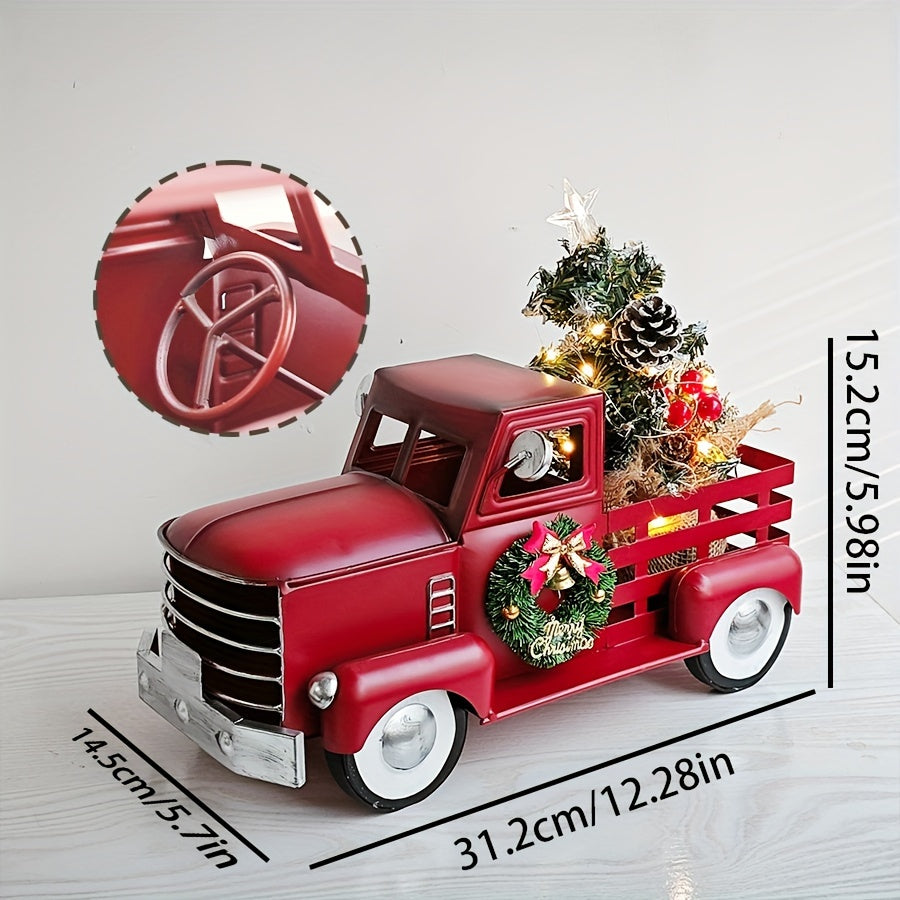 Esse enfeite natalino em formato de caminhonete vintage é uma peça charmosa que adiciona um toque rústico à sua decoração de Natal. A caminhonete, feita de metal, possui detalhes como uma guirlanda na parte frontal e uma pequena árvore decorada na caçamba, tornando-a perfeita para ambientes temáticos e festivos.