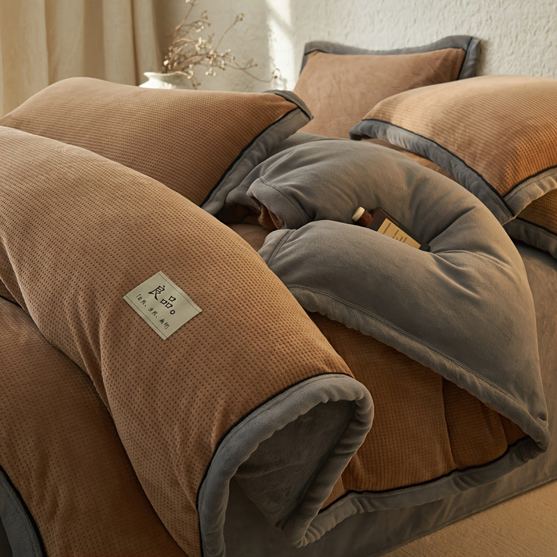 Apresentamos o Edredom Luxuoso de Veludo de Leite, uma peça única que traz conforto e elegância para o seu quarto. Feito com um toque macio e aveludado, este edredom combina estilo e praticidade, proporcionando noites de sono aconchegantes. O design minimalista em tons de marrom e cinza oferece uma estética sofisticada, ideal para ambientes de alto padrão.
