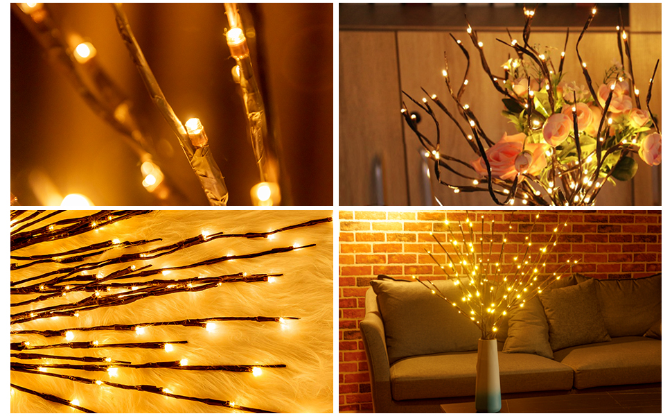 Crie uma atmosfera relaxada e quente com nossas luzes de ramo de salgueiro LED. Perfeitas para decorar sua casa com um toque mágico e acolhedor.