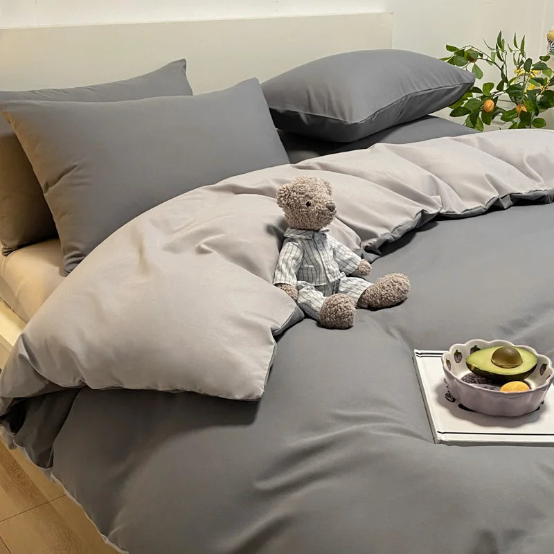 - Queen (200x230cm): Capa de edredom (200x230cm), lençol (230x250cm), 2 fronhas (48x74cm).