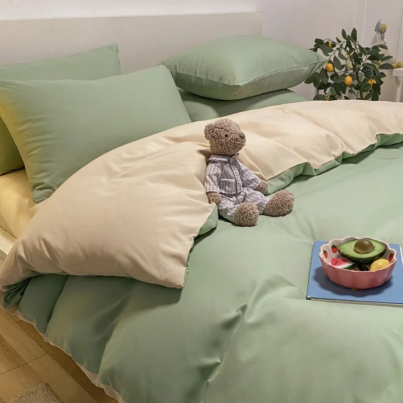 - Casal (180x220cm): Capa de edredom (180x220cm), lençol (230x250cm), 2 fronhas (48x74cm).