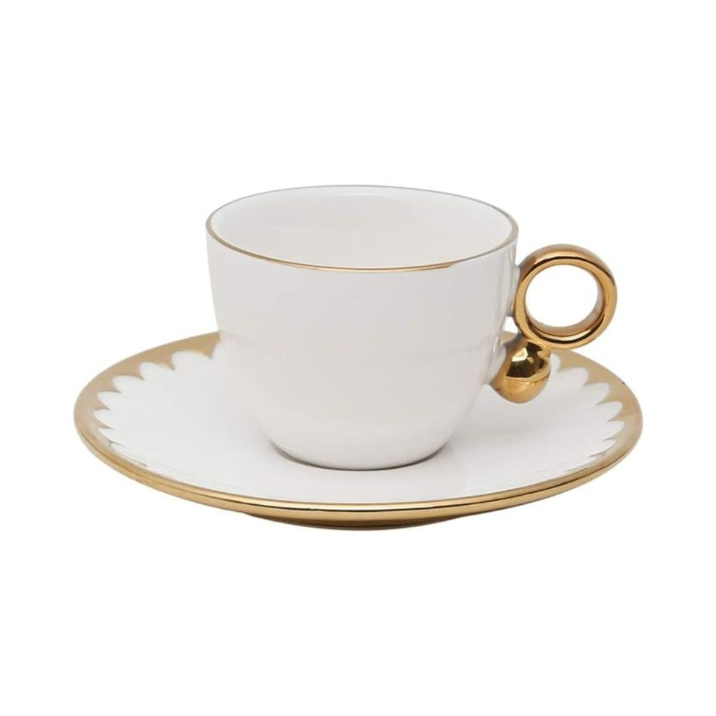 Com o Jogo de Xícaras e Pires Para Café Porcelana Branco e Dourado 90ml Linha Egg 6 Peças a hora do café fica muito mais especial.
