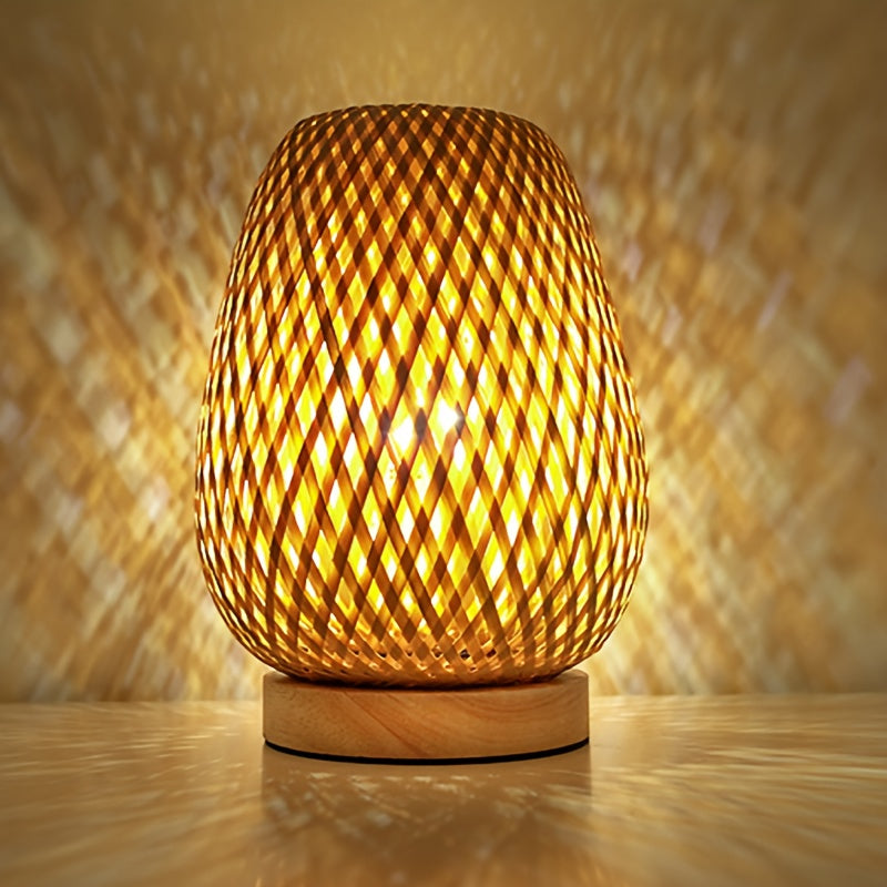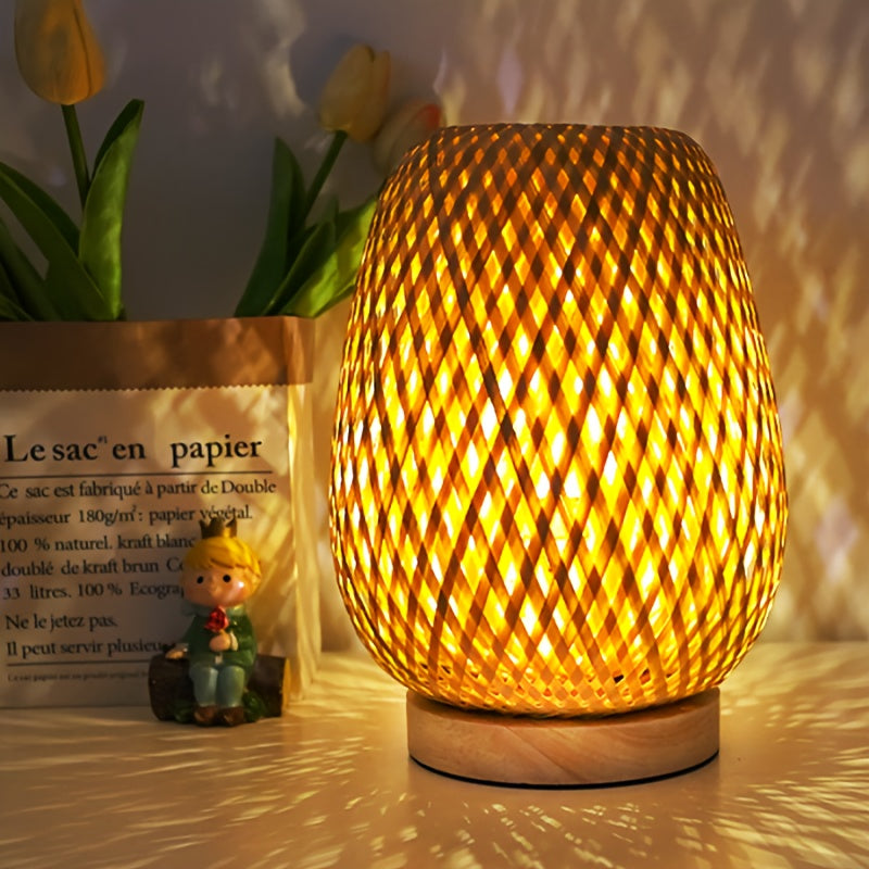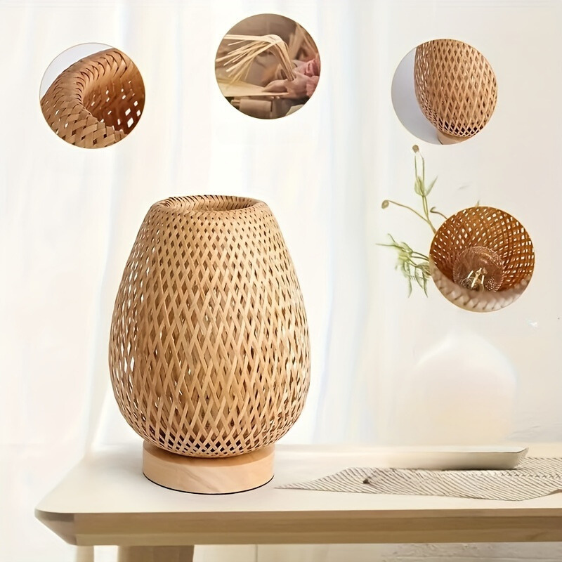Adicione um toque de elegância e aconchego ao seu ambiente com esta luminária de mesa de bambu feita a mão pelo artista. Ideal para quartos, oferece uma iluminação suave e charmosa, perfeita para criar um ambiente acolhedor.
