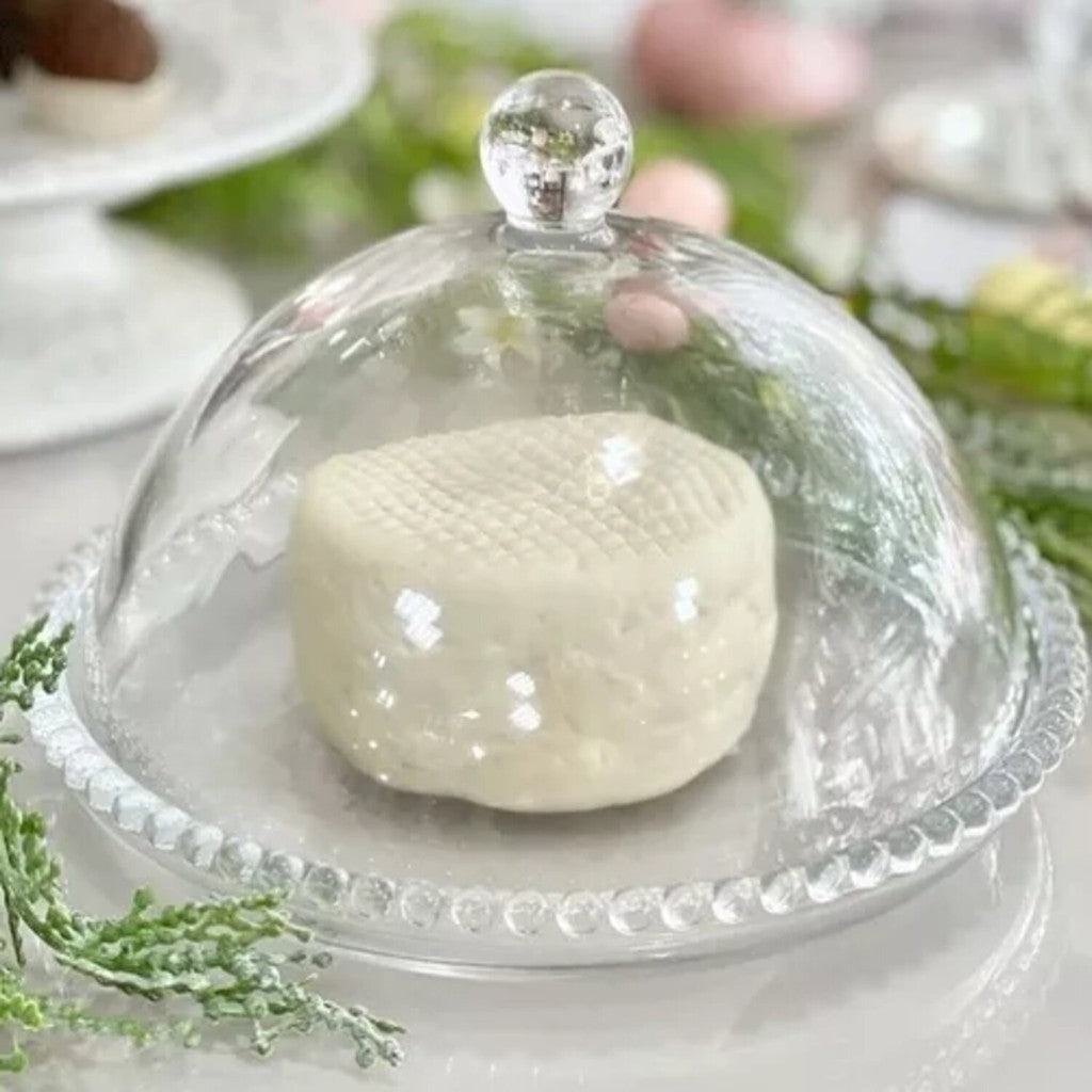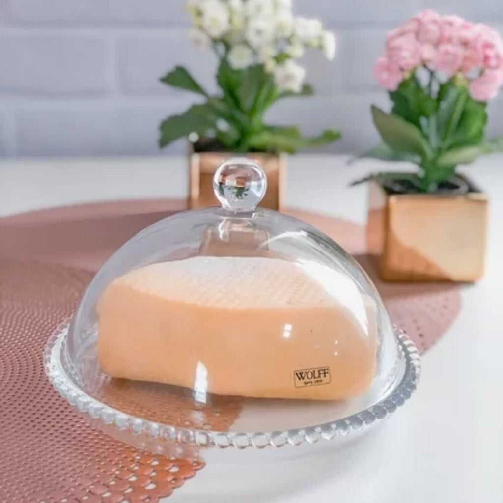 A Queijeira Cristal Pearl Bolinha - 20 cm decora e organiza sua mesa posta com elegância e praticidade. Além de decorar sua mesa posta, também mantém seu queijo protegido e sempre à mão.