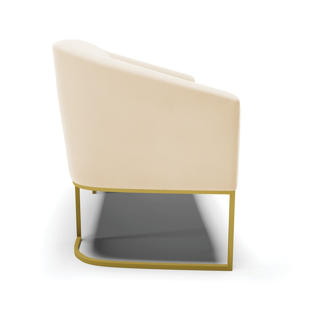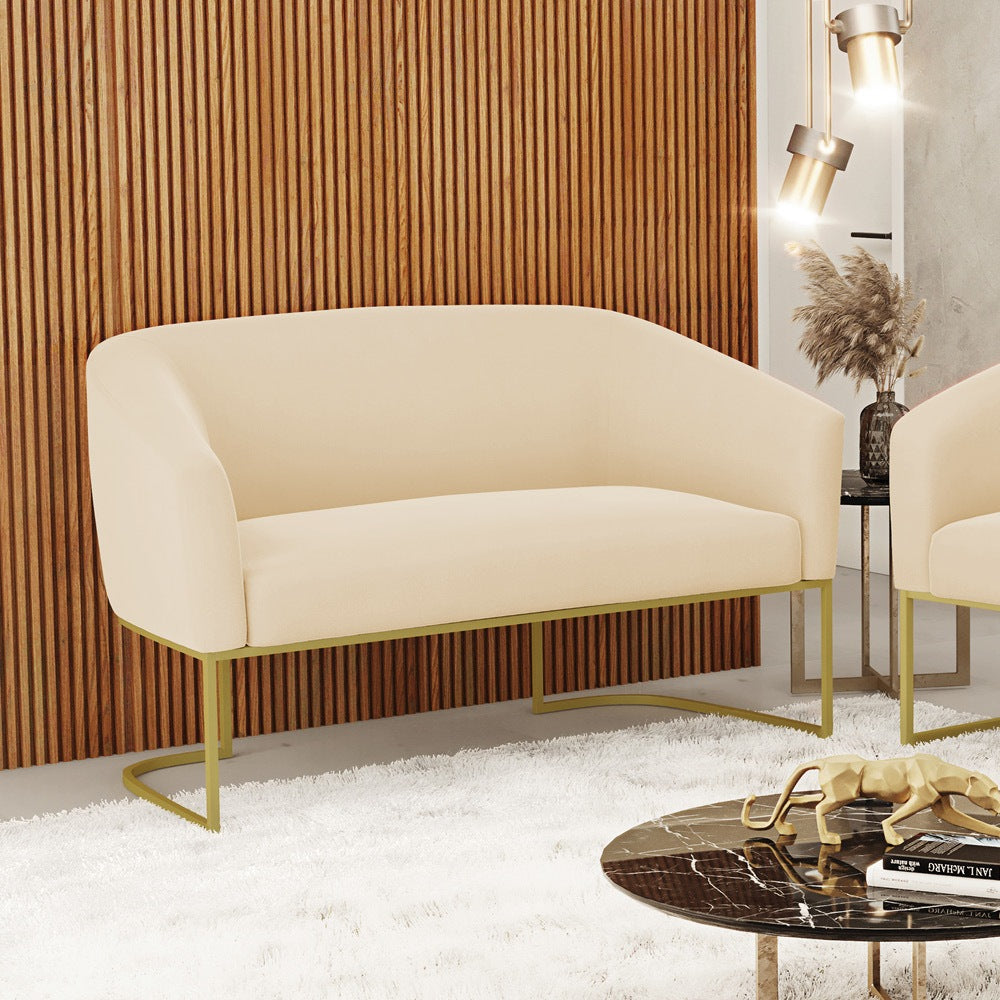 O Sofá Namoradeira Stella é a combinação perfeita de elegância e conforto, ideal para ambientes residenciais ou comerciais. Seu design moderno com base industrial dourada e revestimento em suede agrega sofisticação e aconchego a qualquer espaço.